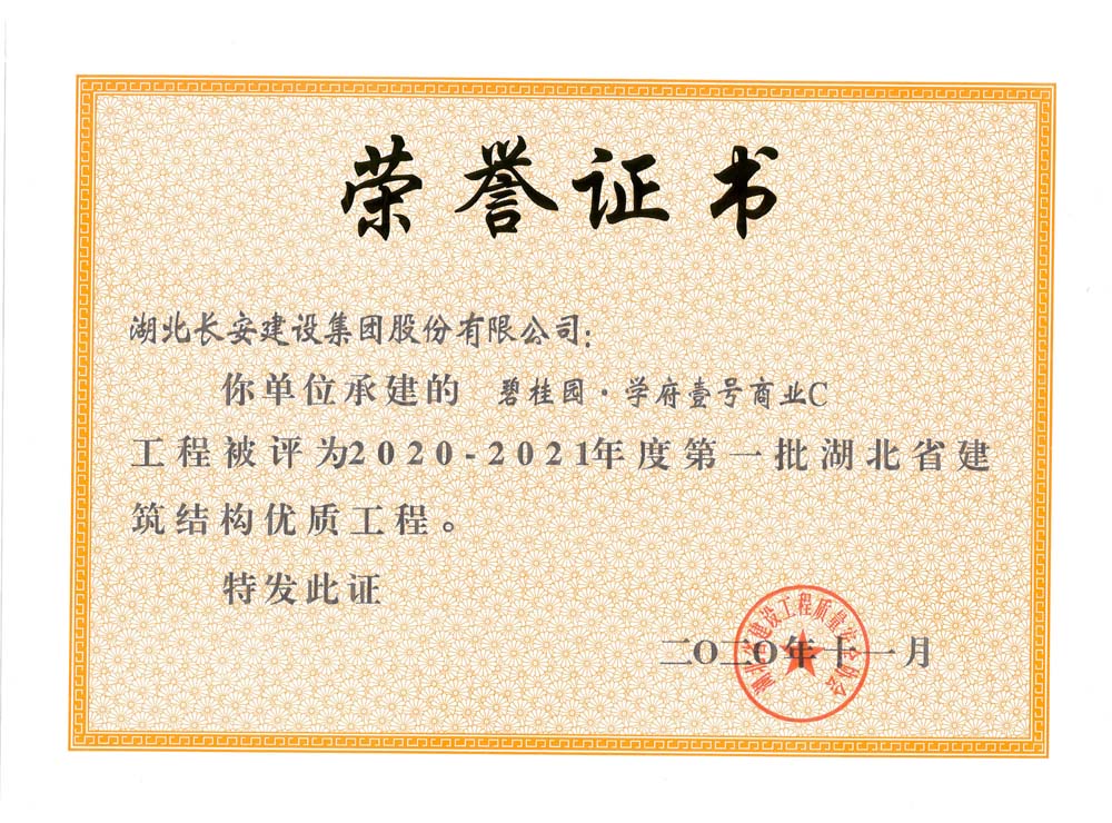 碧桂園·學(xué)府壹號商業(yè)C2020-2021年度第一批湖北省建筑結(jié)構(gòu)優(yōu)質(zhì)工程