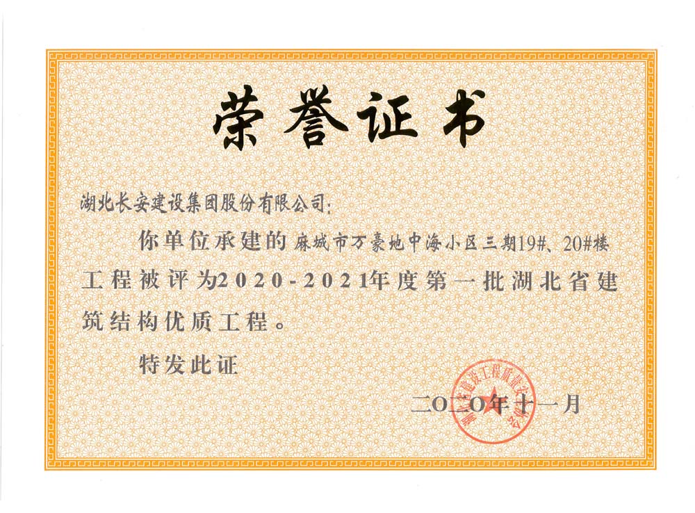 麻城市萬豪地中海小區(qū)三期19#、20#樓2020-2021年度第一批湖北省建筑結(jié)構(gòu)優(yōu)質(zhì)工程