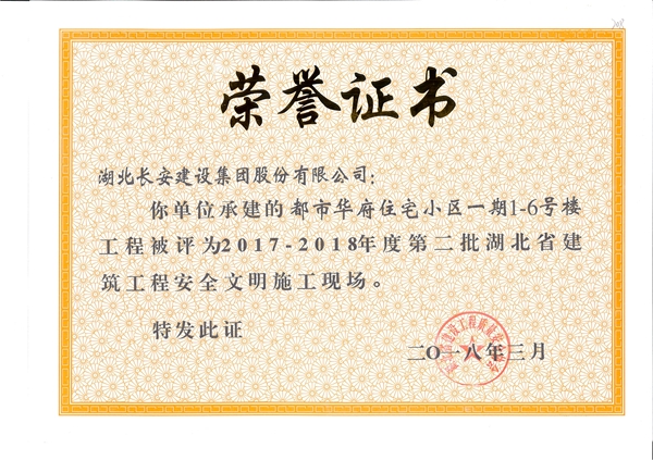 2018年省安全文明榮譽(yù)證書