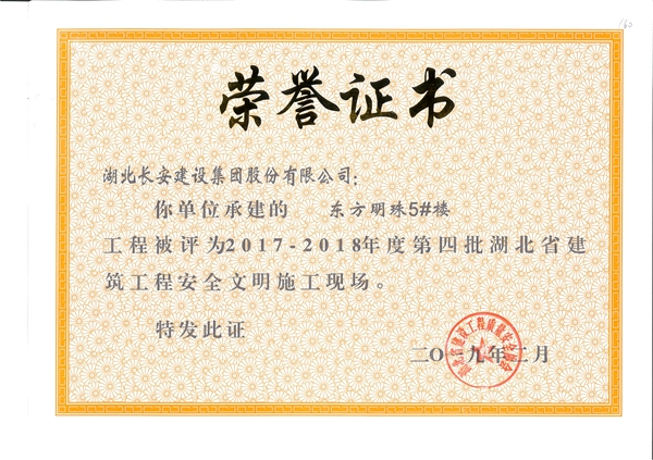 2019年省安全文明榮譽(yù)證書