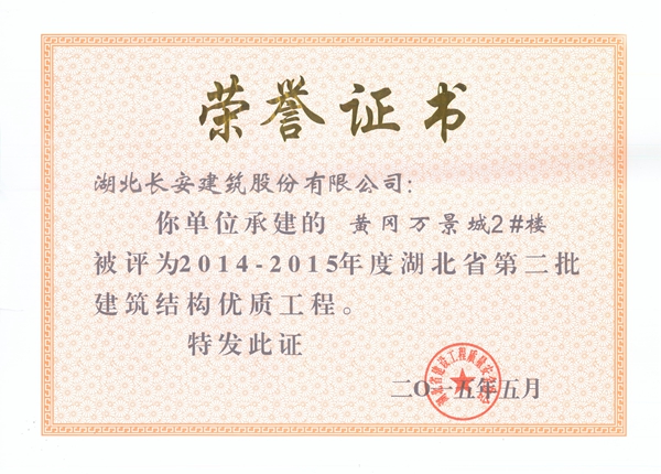 2015年省建筑結(jié)構(gòu)優(yōu)質(zhì)工程榮譽(yù)證書