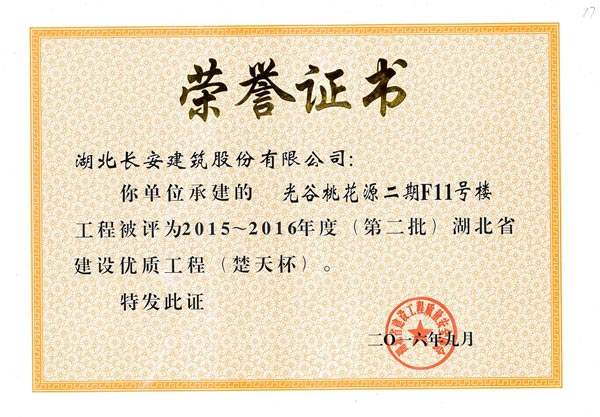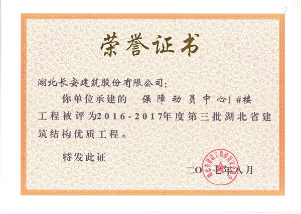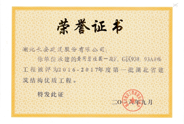 2017年省建筑結(jié)構(gòu)優(yōu)質(zhì)工程榮譽(yù)證書