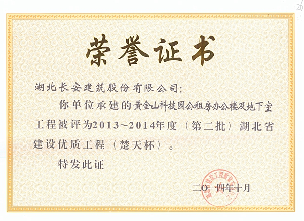 2014年省建筑結(jié)構(gòu)優(yōu)質(zhì)工程榮譽(yù)證書