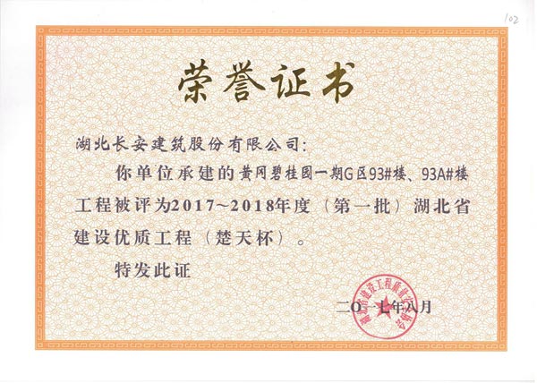2018年省建筑結(jié)構(gòu)優(yōu)質(zhì)工程榮譽(yù)證書