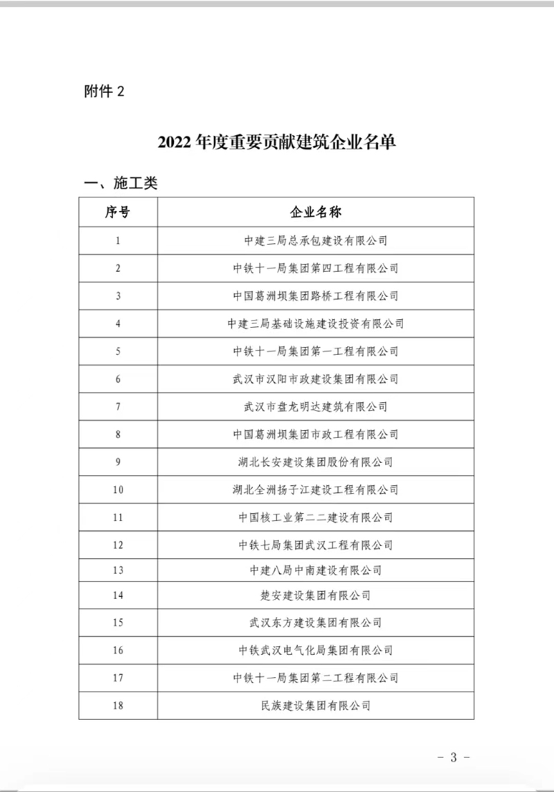 湖北省住建廳授予集團公司“2022年度重要貢獻建筑企業(yè)”榮譽稱號