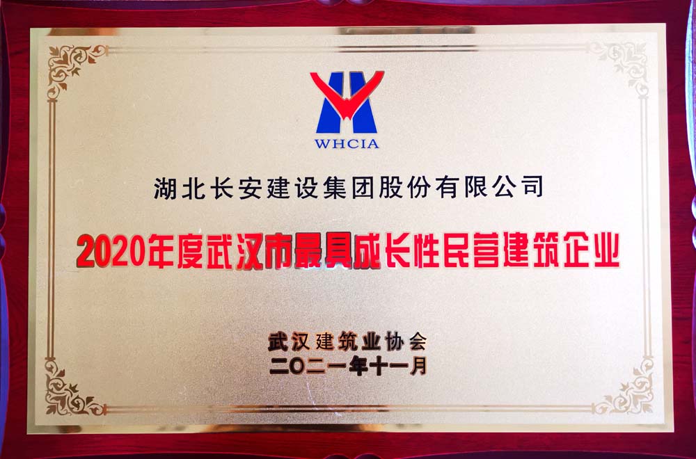 湖北長(zhǎng)安建設(shè)集團(tuán)榮獲2020年度武漢市最具成長(zhǎng)性民營(yíng)建筑企業(yè)榮譽(yù)稱號(hào)
