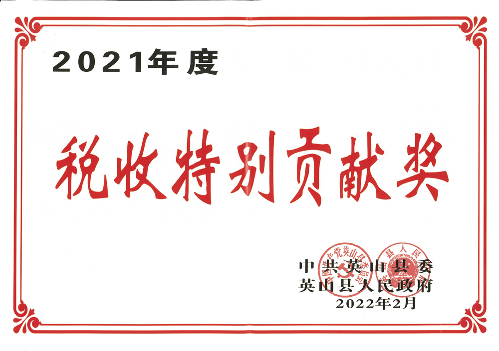 集團(tuán)榮獲英山縣2021年度稅收特別貢獻(xiàn)獎(jiǎng)