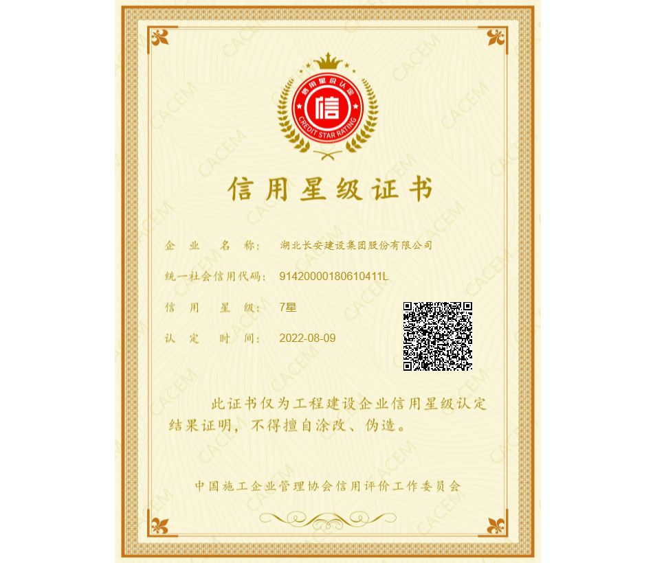 集團(tuán)通過“工程建設(shè)企業(yè)信用7星級(jí)”認(rèn)定