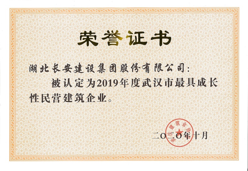 2019年度武漢市最具成長(zhǎng)性民營(yíng)建筑企業(yè)