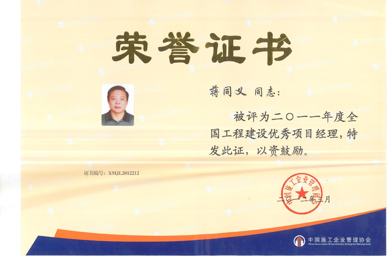 2011年度全國(guó)工程建設(shè)優(yōu)秀項(xiàng)目經(jīng)理(蔣同義)