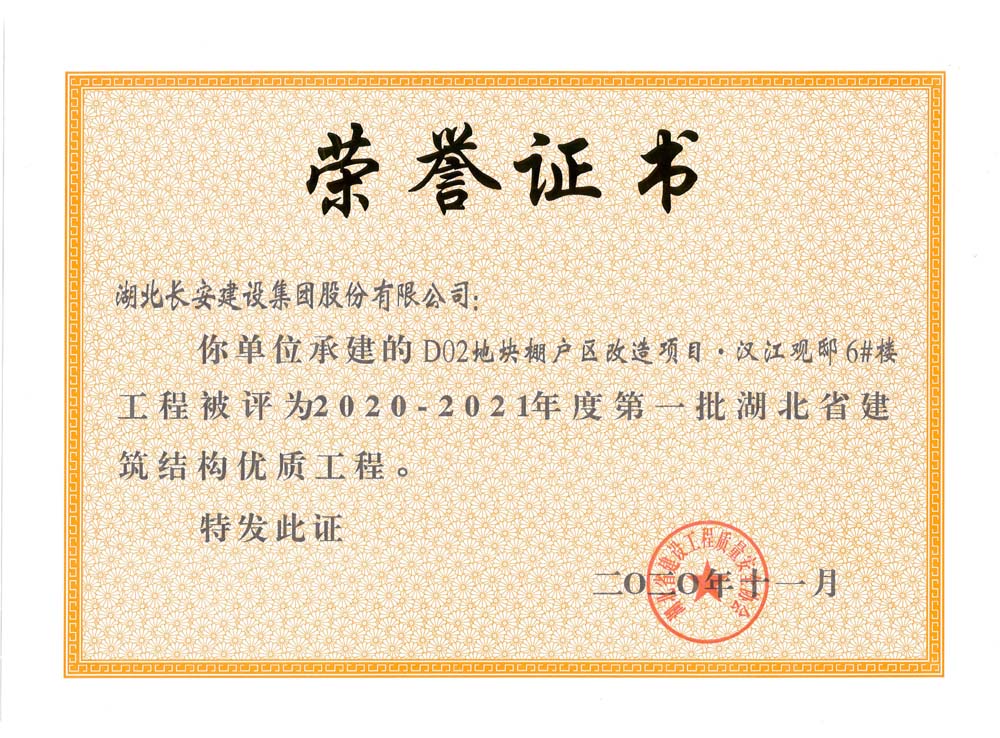 D02地塊棚戶區(qū)改造項(xiàng)目丶漢江觀邸6#樓2020-2021年度第一批湖北省建筑結(jié)構(gòu)優(yōu)質(zhì)工程