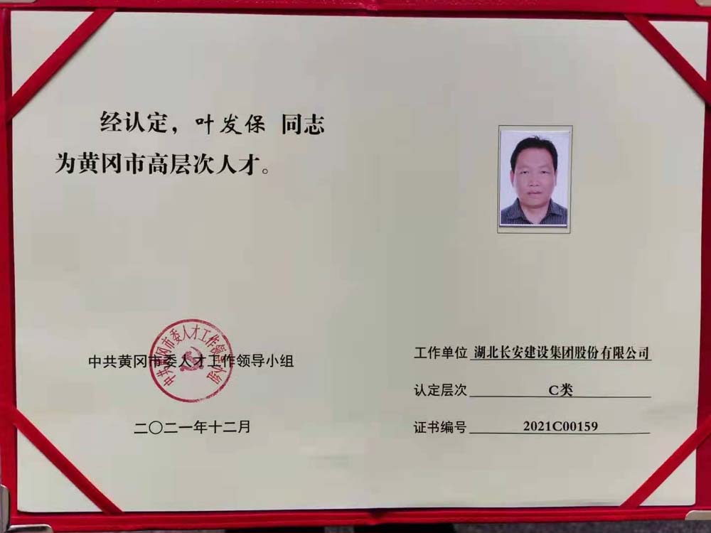 集團總經理葉發(fā)保榮獲“黃岡市高層次人才”稱號