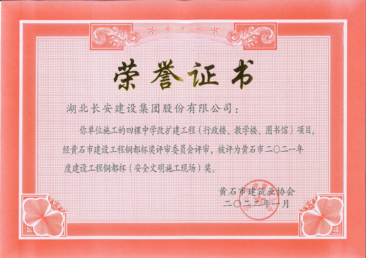 黃石四棵中學改擴建工程項目榮獲結(jié)構(gòu)優(yōu)質(zhì)工程和安全文明施工現(xiàn)場