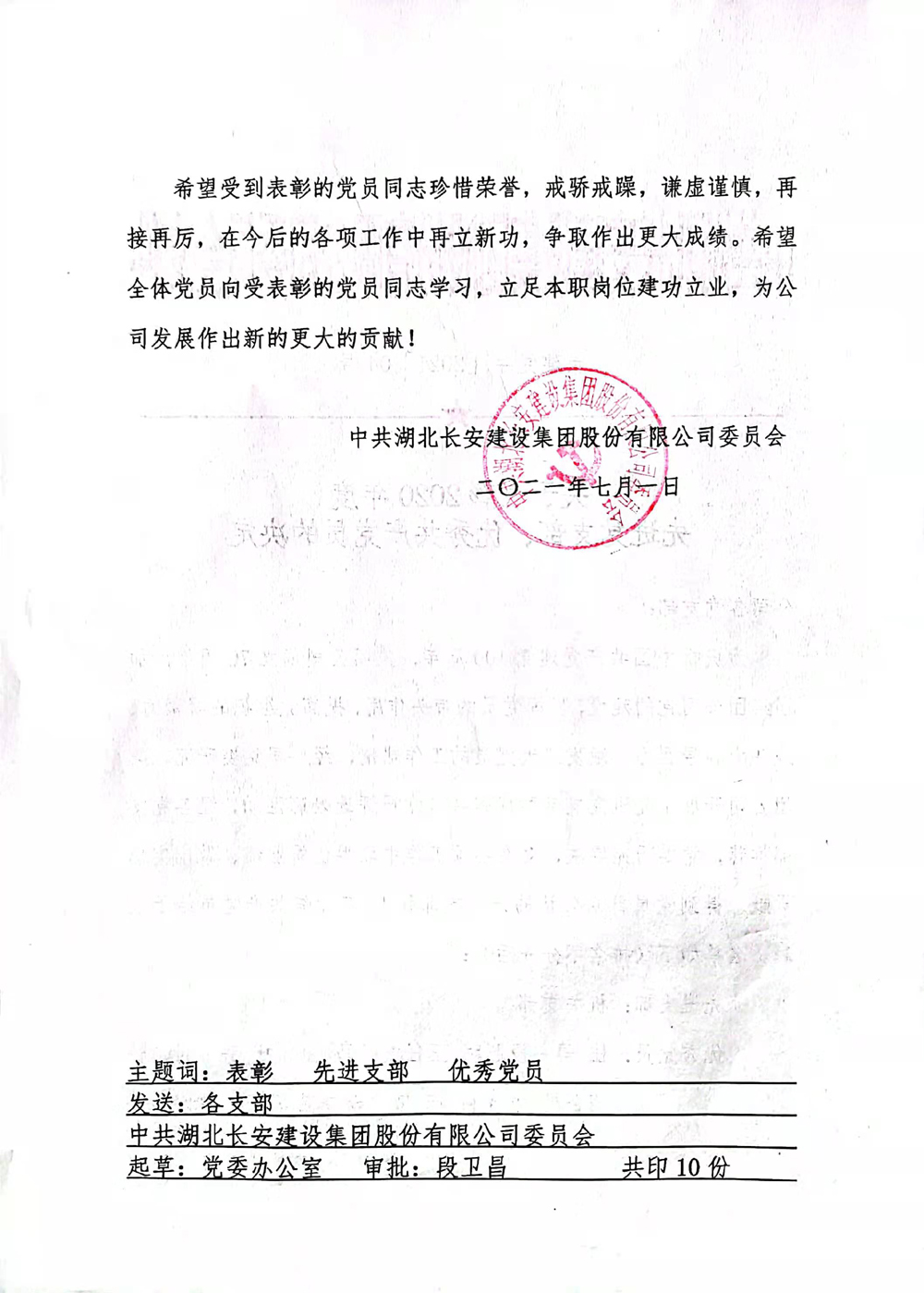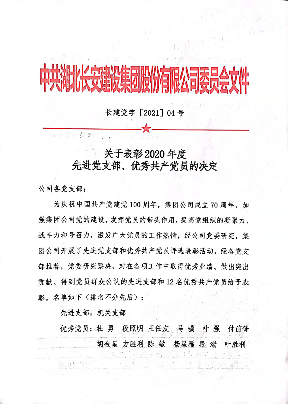 關(guān)于表彰2020年度先進黨支部、優(yōu)秀共產(chǎn)黨員的決定
