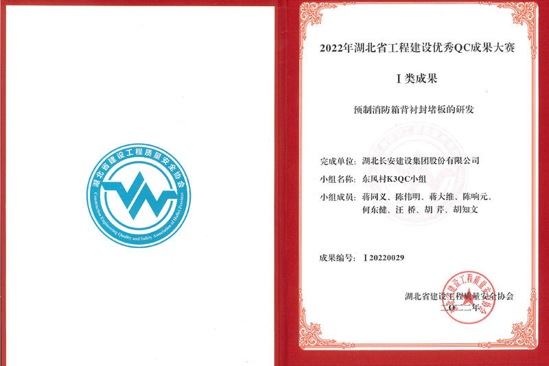 預制消防箱背襯封堵板的研發(fā)(2022年湖北省QC大賽Ⅰ類成果獎)