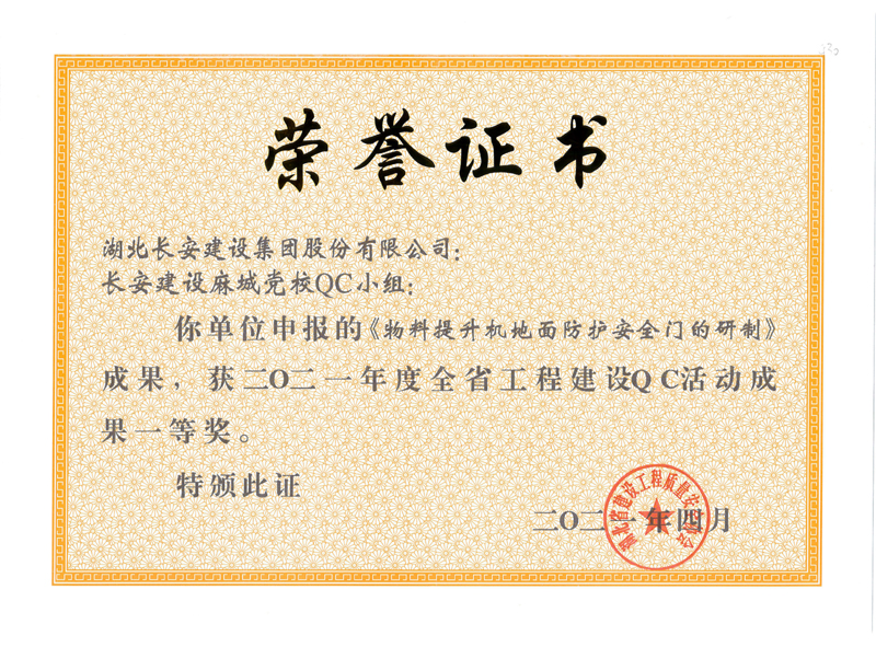 物料提升機(jī)地面防護(hù)安全門的研制(2021年度湖北省QC活動(dòng)成果一等獎(jiǎng))
