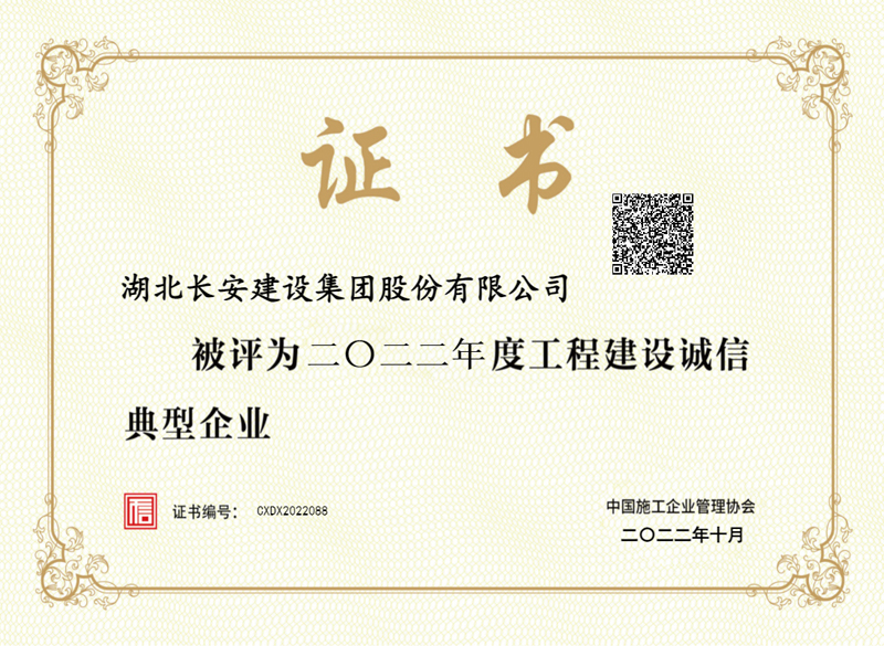 榮獲二O二二年度工程建設(shè)誠信典型企業(yè)稱號(hào)