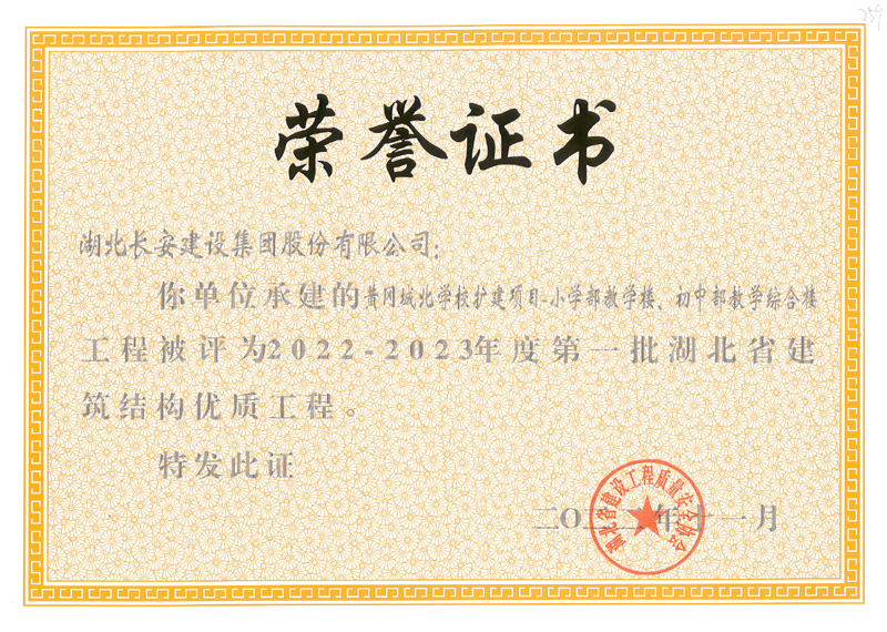 黃岡市黃州區(qū)萬福實驗學(xué)校等9個工程榮獲2022-2023年度第一批湖北省建筑結(jié)構(gòu)優(yōu)質(zhì)工程