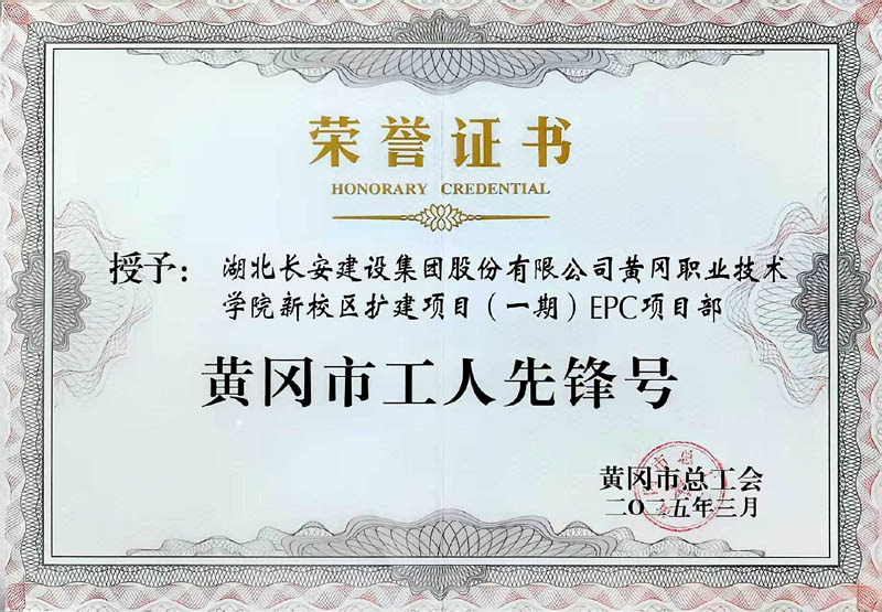 黃岡職業(yè)技術(shù)學院新校區(qū)擴建項目(一期)EPC項目部獲評“黃岡市工人先鋒號”