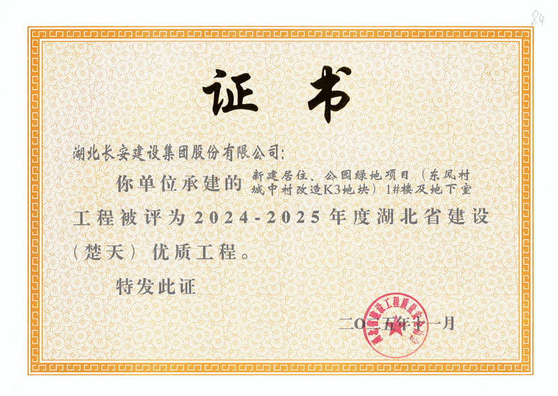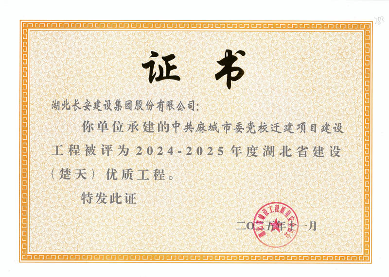 9項工程獲評2024-2025年度湖北?。ǔ欤﹥?yōu)質(zhì)工程
