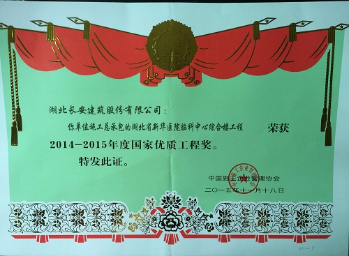 湖北省新華醫(yī)院腦科中心綜合樓國(guó)優(yōu)獎(jiǎng)牌2015