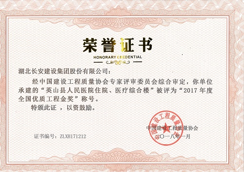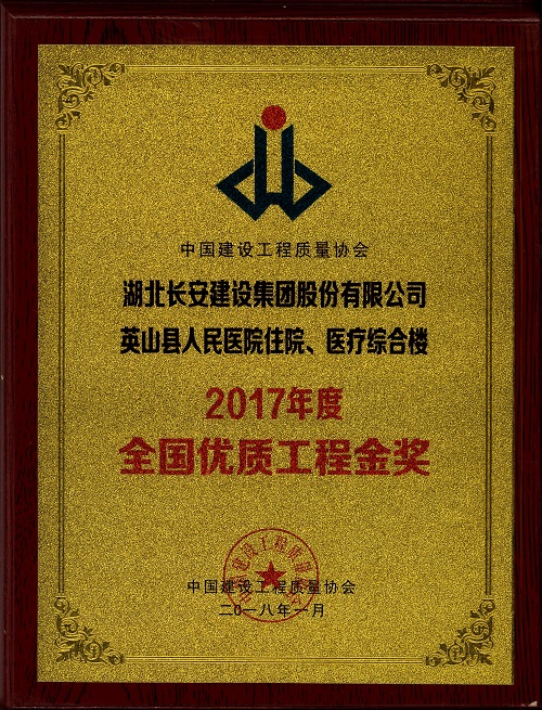 英山縣人民醫(yī)院住院、醫(yī)療綜合樓被評(píng)為2017年度全國(guó)優(yōu)質(zhì)工程金獎(jiǎng)
