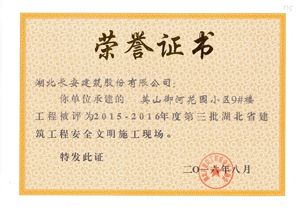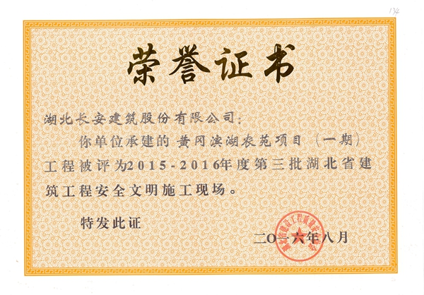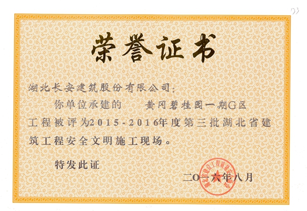 黃岡萬景城1#樓被評為2015-2016年度第二批省安全文明施工現場