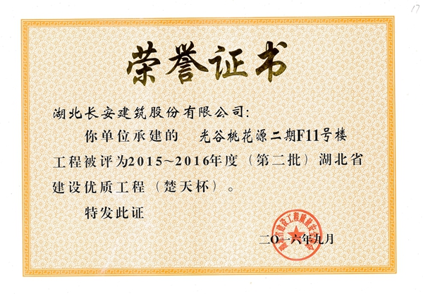 光谷桃花源二期F11號樓省優(yōu)質(zhì)(楚天杯)2016