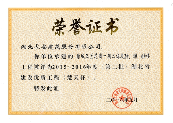 綠城玉蘭花園一期二標(biāo)段2#、4#、6#樓省優(yōu)質(zhì)(楚天杯)2016