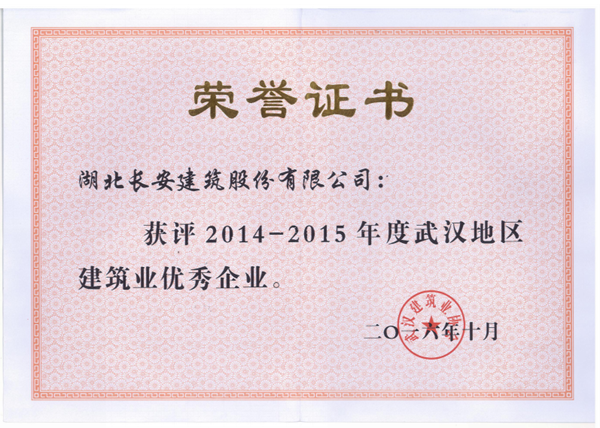2014-2015年度武漢地區(qū)建筑業(yè)優(yōu)秀企業(yè)2016