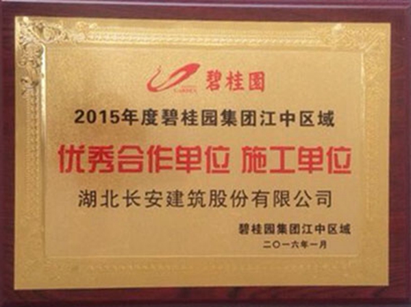 2015年度碧桂園集團江中區(qū)域優(yōu)秀合作單位、施工單位獎牌