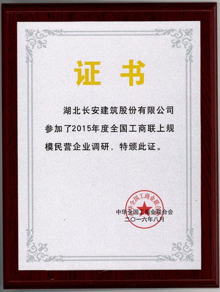 參加2015年度全國工商聯(lián)上規(guī)模民營企業(yè)調(diào)研2016