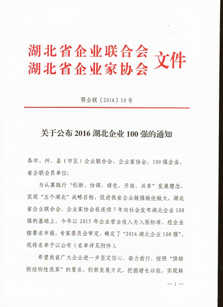 湖北企業(yè)100強57位(只文件、報紙)