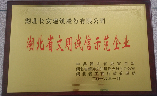 湖北省文明誠信示范企業(yè)證書2016
