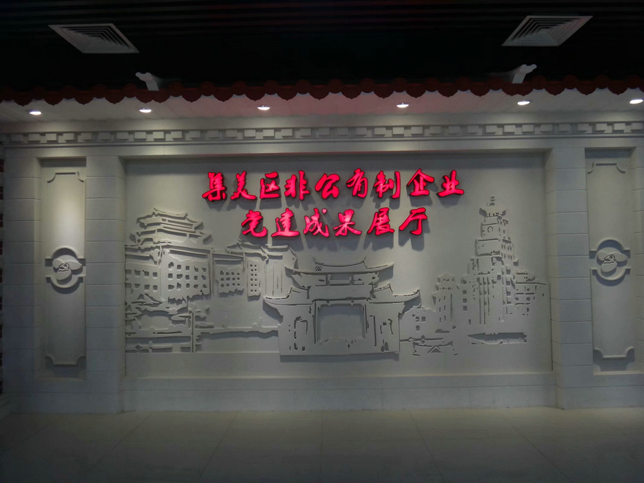 第一站參觀同安工業(yè)園區(qū)黨群活動(dòng)服務(wù)中心。在電梯出入口處擺放了很多企業(yè)簡(jiǎn)報(bào)、報(bào)刊,很好的為各企業(yè)做了宣傳和推介。該中心統(tǒng)一標(biāo)識(shí)為“三角梅”LOGO,即以廈門市花三角梅環(huán)繞黨徽,而黨徽代表黨組織居于領(lǐng)導(dǎo)核心地位,三片花瓣主要體現(xiàn)廈門元素,也代表工、青、婦三個(gè)群團(tuán)組織,整體形象凸顯黨群共建和共同締造的理念。
