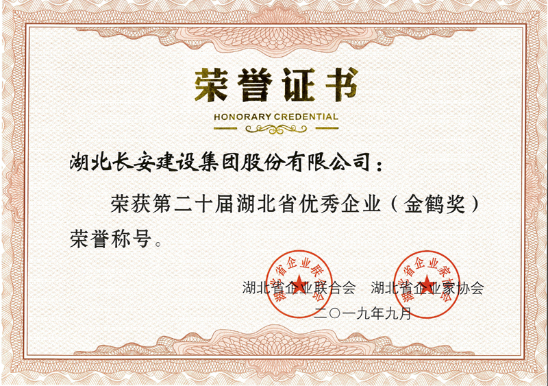 2019年第20屆省優(yōu)秀企業(yè)(金鶴獎(jiǎng))