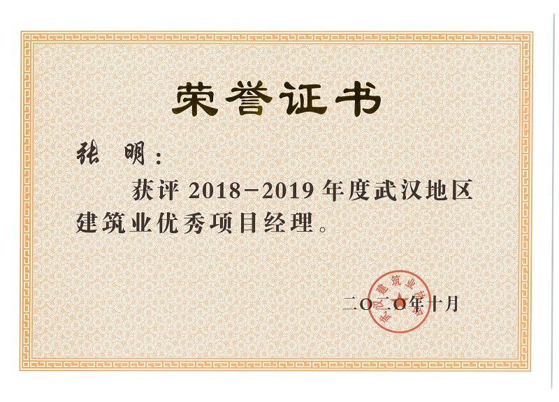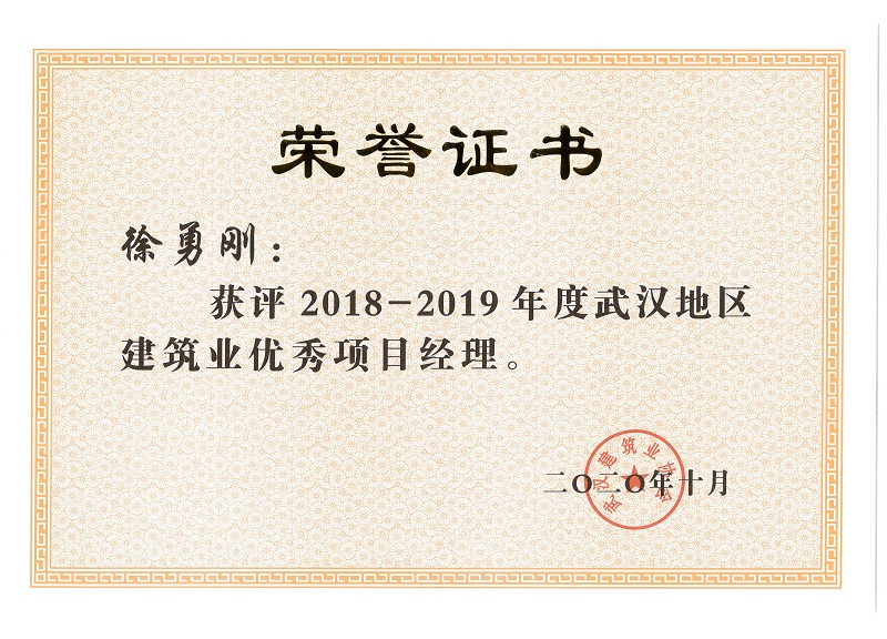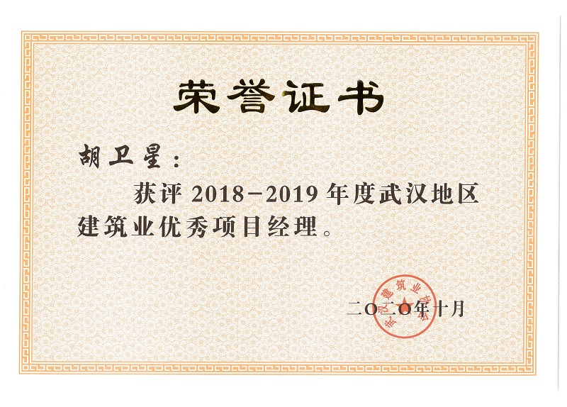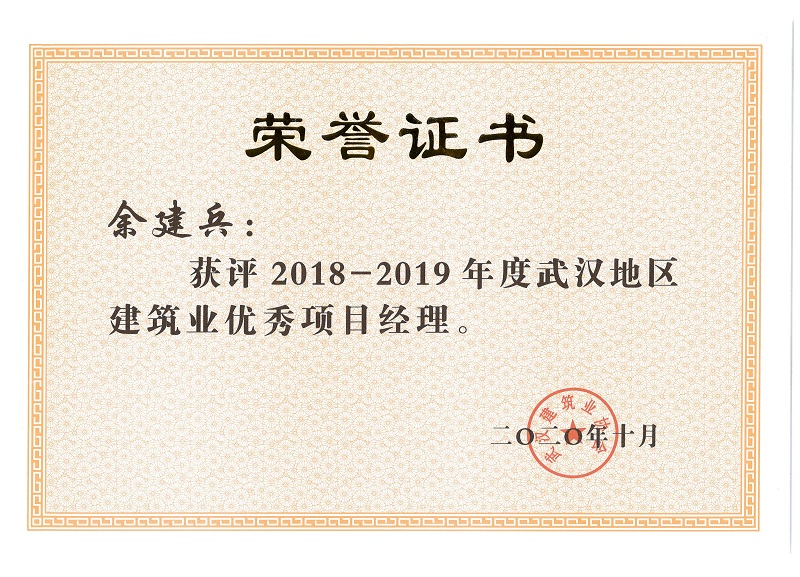 段錦添、胡衛(wèi)星、張明、徐勇剛、余建兵獲評(píng)2018-2019年度武漢地區(qū)建筑業(yè)優(yōu)秀項(xiàng)目經(jīng)理