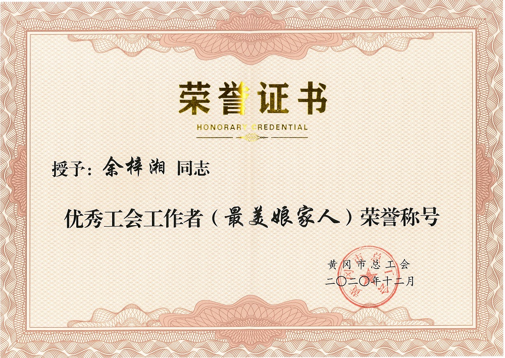 余梓湘榮獲優(yōu)秀工會工作者稱號