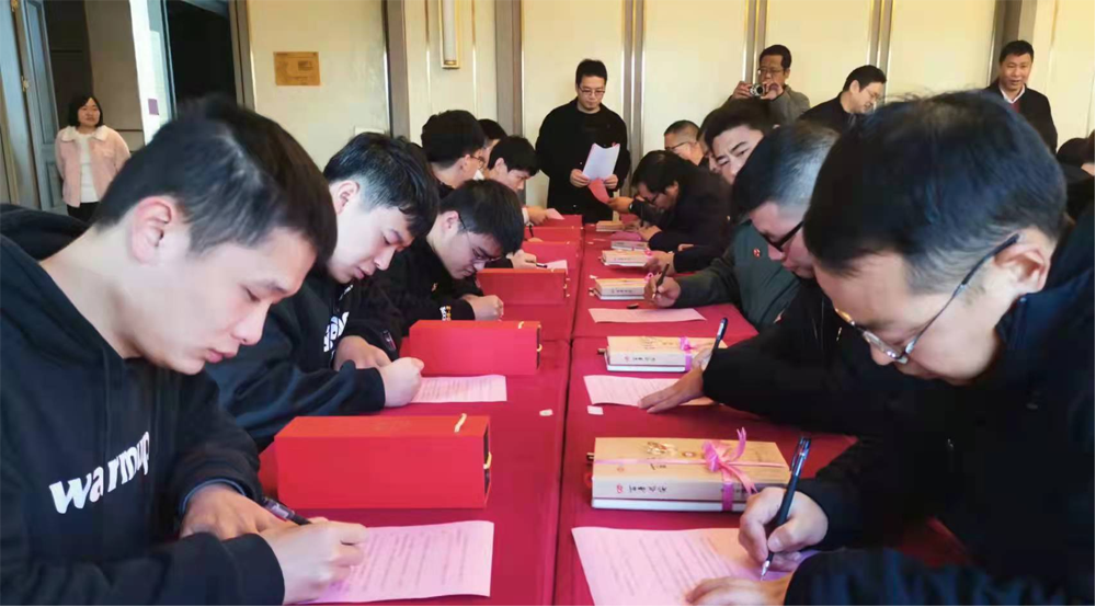結(jié)對儀式上,集團領(lǐng)導(dǎo)宣讀了師徒結(jié)對名單、向師傅頒發(fā)證書;54名師徒簽署師徒結(jié)對協(xié)議并且互贈禮品,師傅為徒弟佩帶長安建設(shè)集團胸章;師徒雙方代表發(fā)言,表示有信心有決心“互敬互愛,互幫互學(xué),共同進步”。