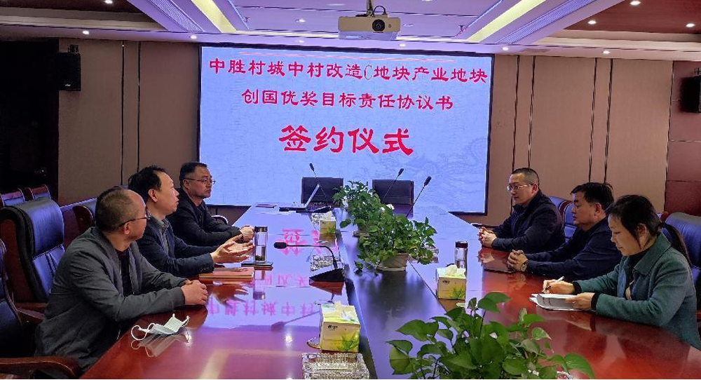 3月8日,中勝村城中村改造C地塊產(chǎn)業(yè)地塊創(chuàng)國優(yōu)獎目標(biāo)責(zé)任協(xié)議書簽約儀式在集團(tuán)武漢分公司舉行。以集團(tuán)總經(jīng)理葉發(fā)保任組長的項(xiàng)目創(chuàng)優(yōu)班子主要負(fù)責(zé)人參加簽約儀式,共同見證這個(gè)莊嚴(yán)而神圣的時(shí)刻。總經(jīng)理葉發(fā)保(左)代表集團(tuán)公司與該項(xiàng)目經(jīng)營承包負(fù)責(zé)人、項(xiàng)目經(jīng)理段照明(右)在《目標(biāo)責(zé)任協(xié)議書》上簽字。