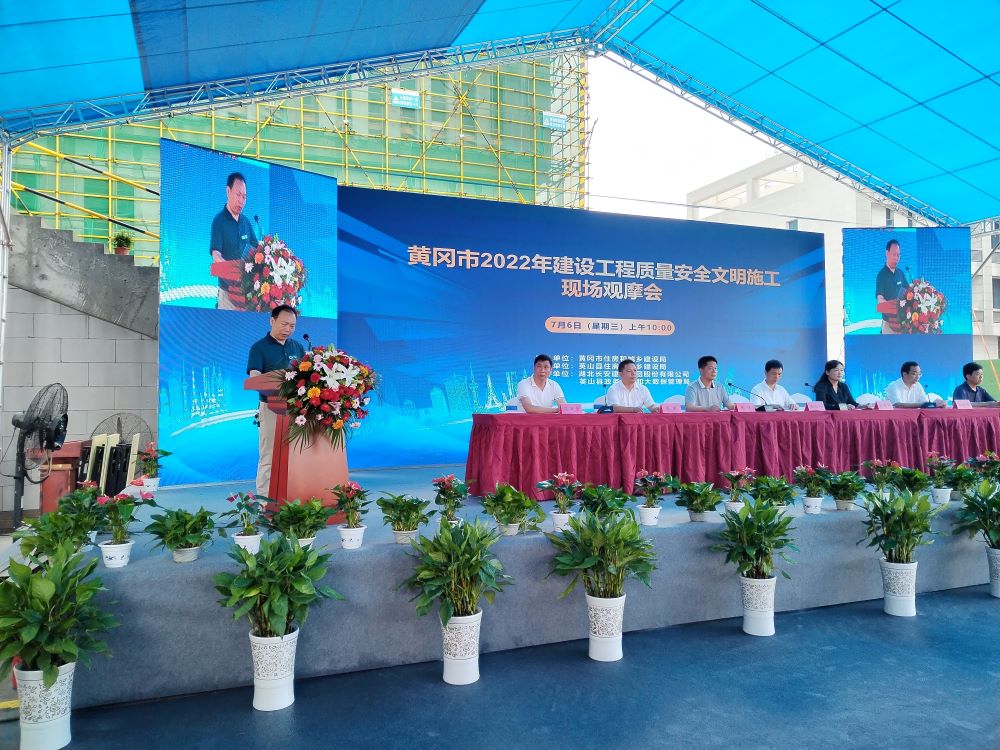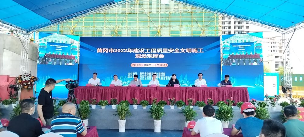 酷暑盛夏,火紅歲月。7月6日,黃岡市2022年建設(shè)工程質(zhì)量安全文明施工現(xiàn)場觀摩活動在湖北長安建設(shè)集團承建的英山縣政務(wù)服務(wù)中心建設(shè)項目現(xiàn)場召開。黃岡市住建局黨組成員、副局長徐向華,英山縣縣委副書記、政法委書記張春梅,英山縣住建局黨組書記、局長段衛(wèi)國,英山縣政務(wù)服務(wù)和大數(shù)據(jù)管理局黨組書記、局長段斌,英山縣應(yīng)急管理局黨委書記、局長楊晨曦,湖北省人大代表、黃岡市建筑業(yè)協(xié)會會長、英山縣工商聯(lián)主席、湖北長安建設(shè)集團董事長段衛(wèi)昌出席此次活動。英山縣人民政府黨組成員、副縣長陳瓊主持。