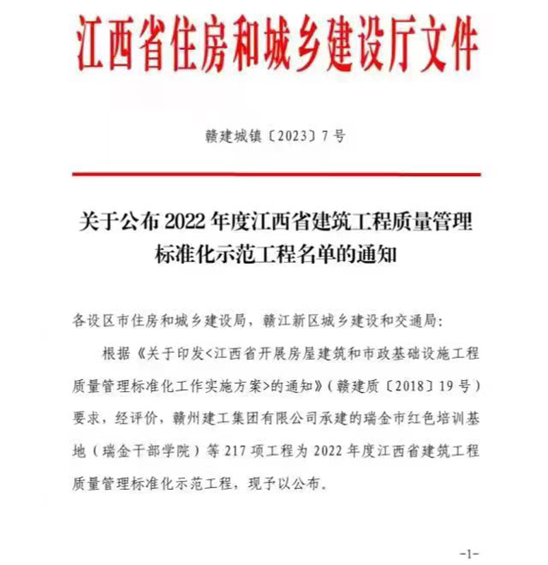 近日,江西省住建廳公布2022年度江西省建筑工程質(zhì)量管理標(biāo)準(zhǔn)示范工程名單,由集團(tuán)公司承建的宜春市人民醫(yī)院二期建設(shè)項(xiàng)目榮譽(yù)入榜。該項(xiàng)目工程面積為122044.25㎡,項(xiàng)目經(jīng)理王任友。