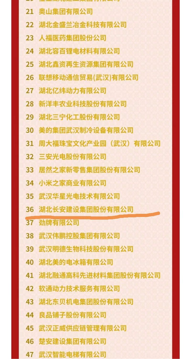 12月5日,湖北省工商業(yè)聯(lián)合會正式發(fā)布了2023湖北民營企業(yè)100強榜單、2023湖北民營企業(yè)制造業(yè)100強榜單、2023湖北民營企業(yè)服務業(yè)20強榜單。集團公司進入2023湖北民營企業(yè)100強榜單,名列第36位,比去年晉升2位。