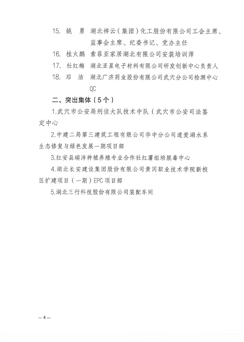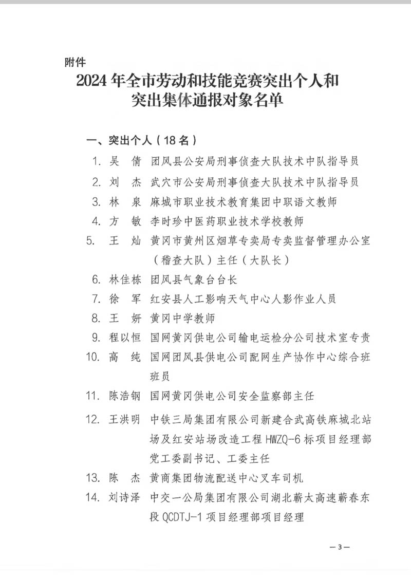 3月5日,黃岡市總工會發(fā)布《關(guān)于2024年全市勞動和技能競賽突出個人和突出集體的通報》,對在2024年勞動和技能競賽中表現(xiàn)突出的18位個人和5個集體進(jìn)行通報表揚。集團公司“黃岡職業(yè)技術(shù)學(xué)院新校區(qū)擴建項目(一期)EPC項目部”被評為“突出集體”,同時認(rèn)定為“黃岡市工人先鋒號”。