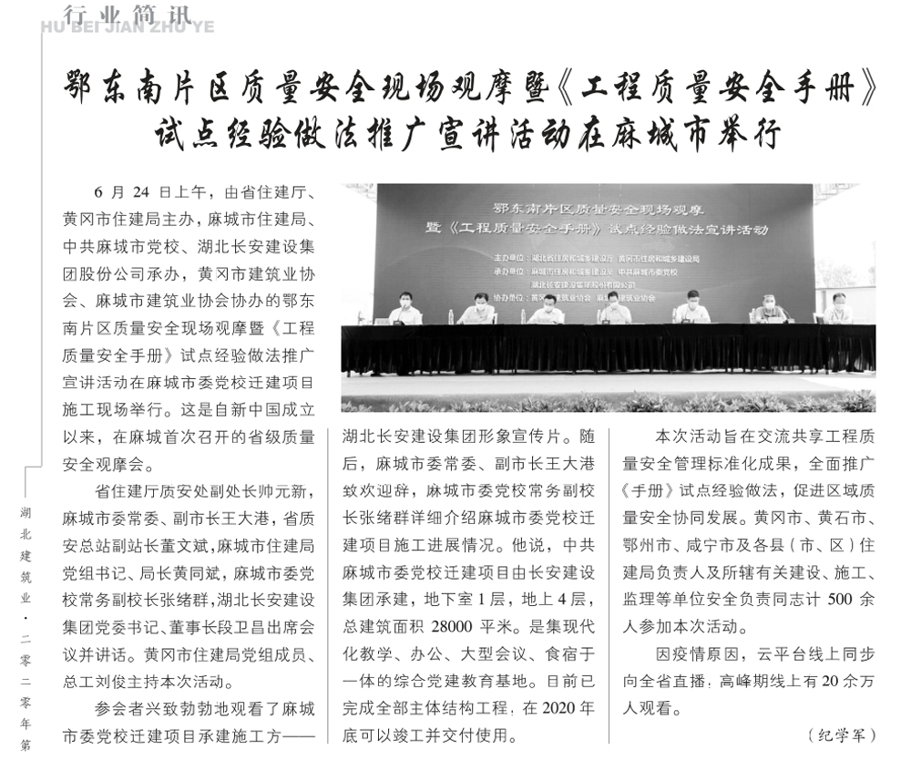 鄂東南片區(qū)質(zhì)量安全現(xiàn)場(chǎng)觀摩暨《工程質(zhì)量安全手冊(cè)》試點(diǎn)經(jīng)驗(yàn)做法推廣宣講活動(dòng)在麻城市舉行