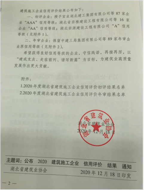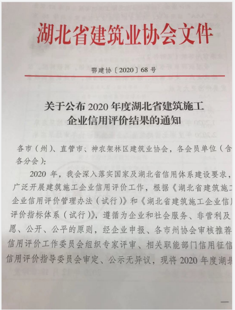 熱烈祝賀集團(tuán)通過(guò)2020年度湖北省建筑施工企業(yè)AAA信用復(fù)審