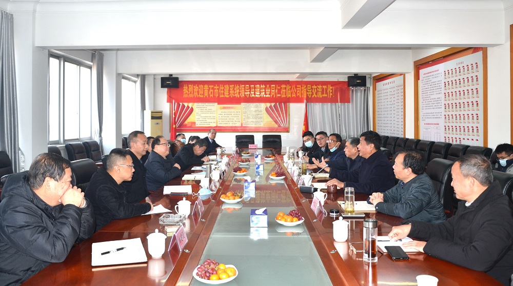 為加強(qiáng)住建系統(tǒng)的企業(yè)交流合作,共同促進(jìn)建筑業(yè)高質(zhì)量發(fā)展,12月25日上午,黃石市住建局二級調(diào)研員馮鵬鷹、建筑業(yè)科科長劉建軍、審批科科長熊正才、市場站站長肖惠萍、建筑業(yè)協(xié)會秘書長劉建設(shè),大冶市住建局副局長陳敬乾,陽新縣住建局副局長程三送帶領(lǐng)黃石市7家建筑企業(yè)負(fù)責(zé)人赴湖北長安建設(shè)集團(tuán)交流學(xué)習(xí)。黃岡市住建局總工劉俊、建筑業(yè)科科長徐宏、英山縣住建局局長黃威陪同。湖北長安建設(shè)集團(tuán)董事長段衛(wèi)昌、總經(jīng)理葉發(fā)保及相關(guān)部門主管參加交流座談活動。