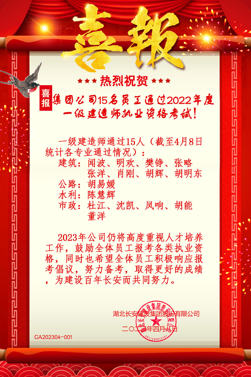 集團(tuán)公司15名員工考取2022年度一建執(zhí)業(yè)資格